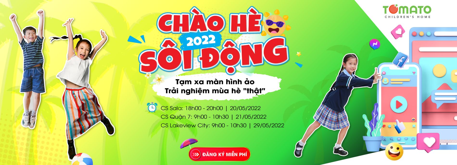Mùa hè là khoảng thời gian trẻ mong đợi nhất, được tận hưởng và vui chơi thỏa sức, ghi dấu hành trình khám phá và trưởng thành của con. TOMATO hứa hẹn mang đến cho các bạn nhỏ mùa hè 2022 với những trải nghiệm “thật": Thật vui tươi, thật bùng nổ với thật nhiều hoạt động vui học kết nối, bổ ích đang chờ đón các bạn nhỏ khám phá và trải nghiệm tại ngày hội “Chào hè 2022 sôi động”!