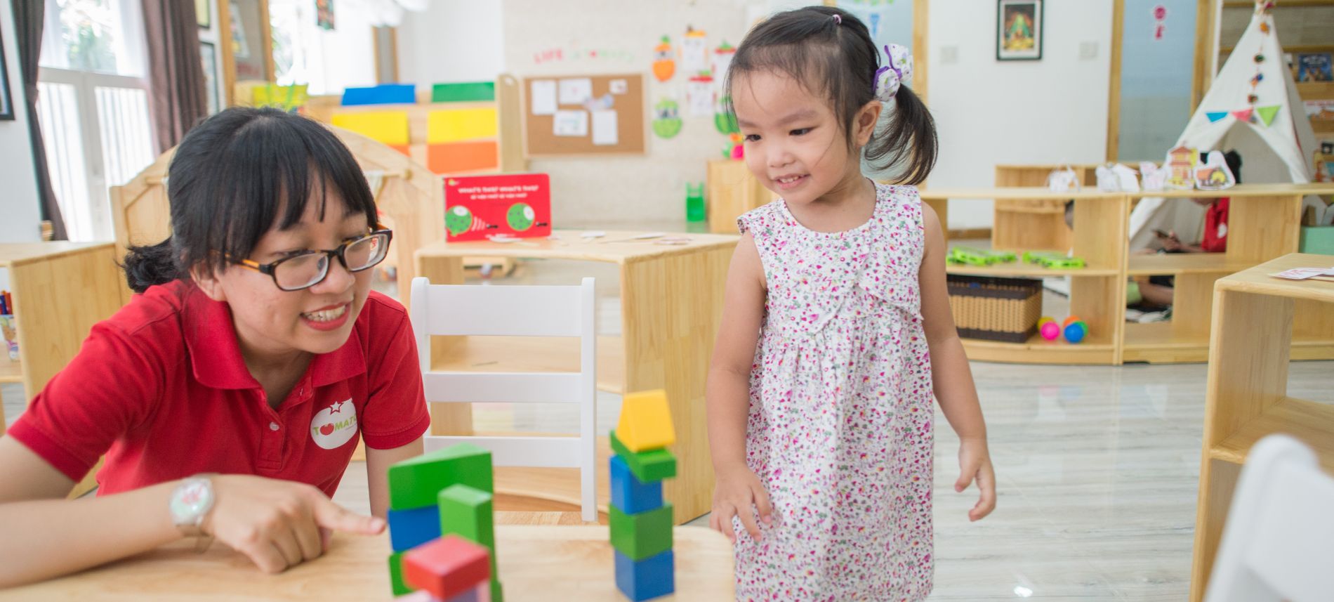 “Môi trường tương tác và vòng tròn các mối quan hệ của bé bị hạn chế khi không được tham gia vào chương trình mẫu giáo khiến cho sự phát triển của các bé cũng bị giới hạn. Việc này khiến bé e dè, dần dần bé lười giao tiếp, vốn từ vựng không phong phú đây là một trong những cản trở khá lớn khi các bé bước vào tiểu học”. - Chị Kiều Linh - Giám đốc điều hành TOMATO Children’s Home chia sẻ.
