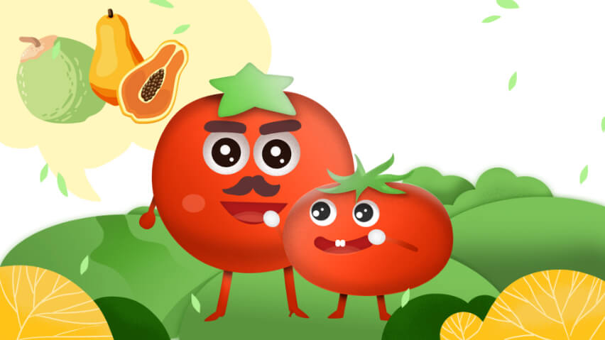 Cà Chua Non dụi đầu vào vòng tay ấm áp của bố mẹ và bắt đầu ngước nhìn vạn vật xung quanh mình. Ồ, trong Khu vườn Cuộc Sống có thật nhiều loài hoa trái. Kìa là những quả dừa cứng cáp, kìa là những quả mãng cầu vỏ xù xì, kìa là những chùm đu đủ đông đúc treo trĩu cành.
